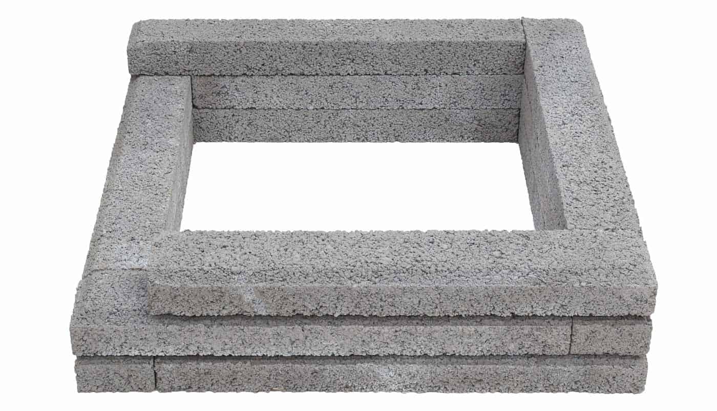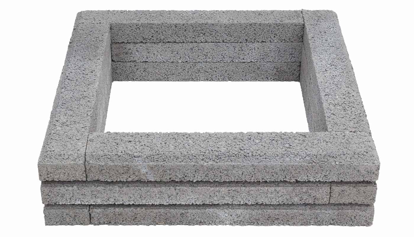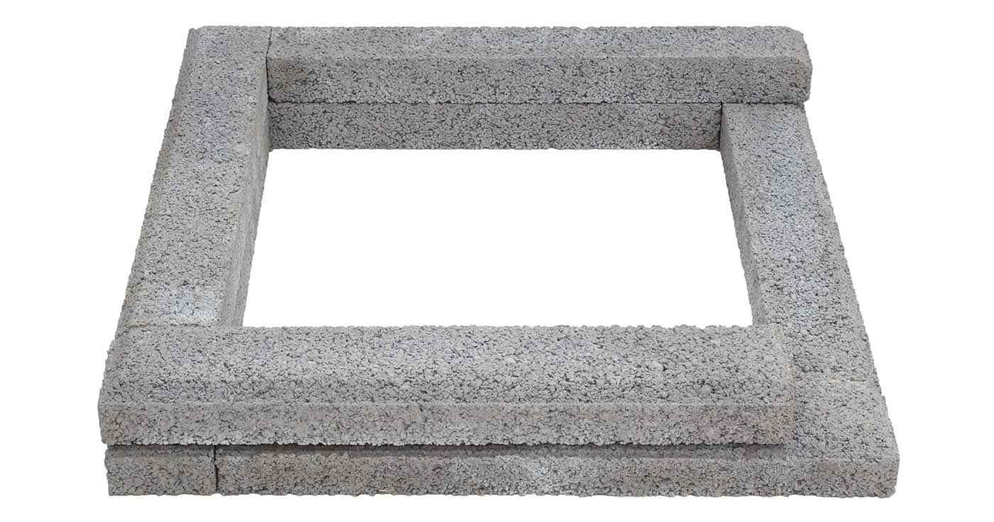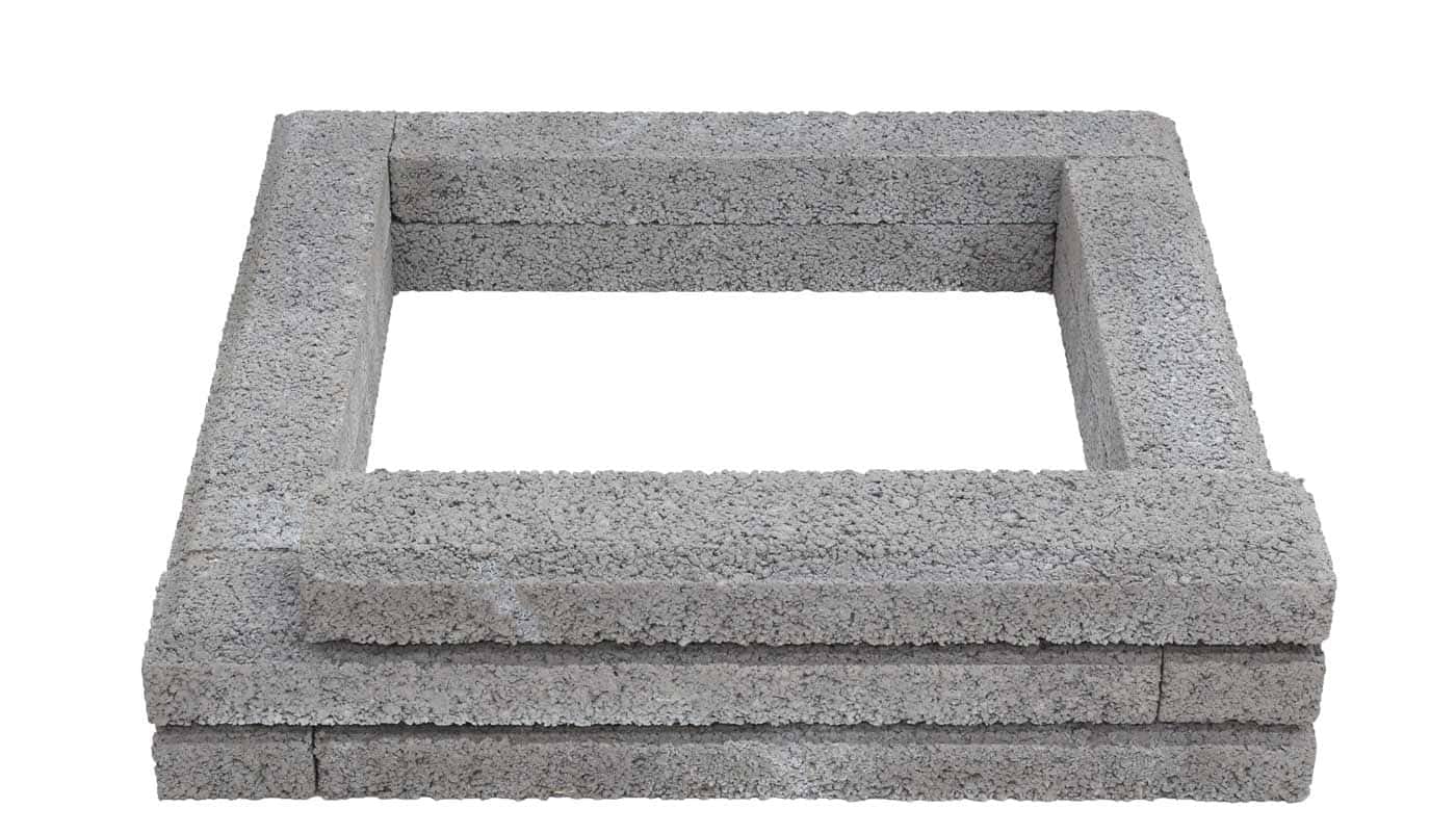 Sur une surface à niveau, (de sable ou de poussière de pierre) placez le 1er bloc de la 1ère rangée (blocs des rangées Impaires) en commençant par l’avant. Placez le à l’extrémité droite de l’endroit déterminé pour l’assemblage de votre foyer.