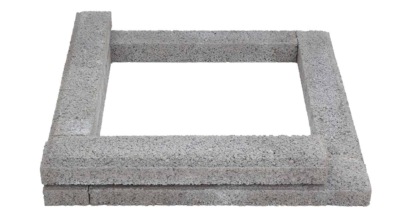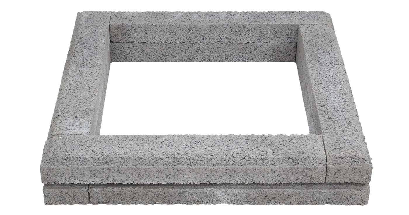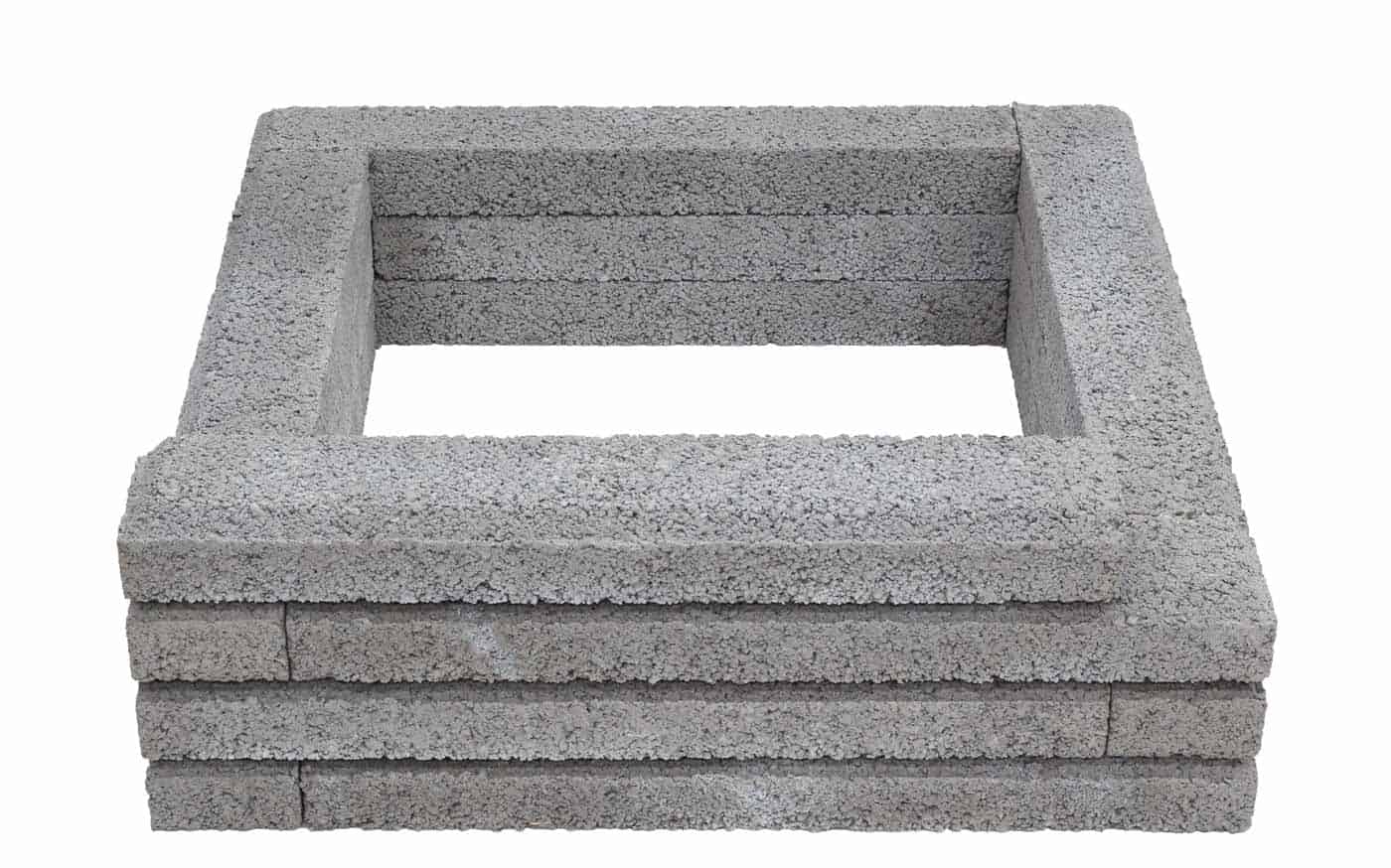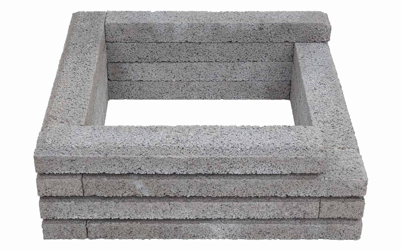 Sur une surface à niveau, (de sable ou de poussière de pierre) placez le 1er bloc de la 1ère rangée (blocs des rangées Impaires) en commençant par l’avant. Placez le à l’extrémité droite de l’endroit déterminé pour l’assemblage de votre foyer.