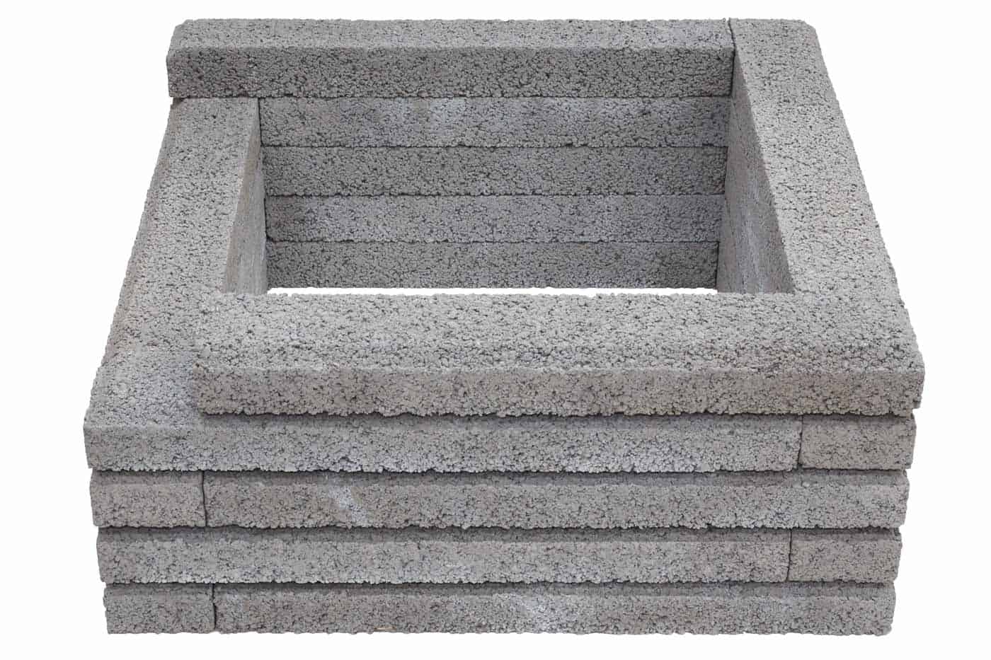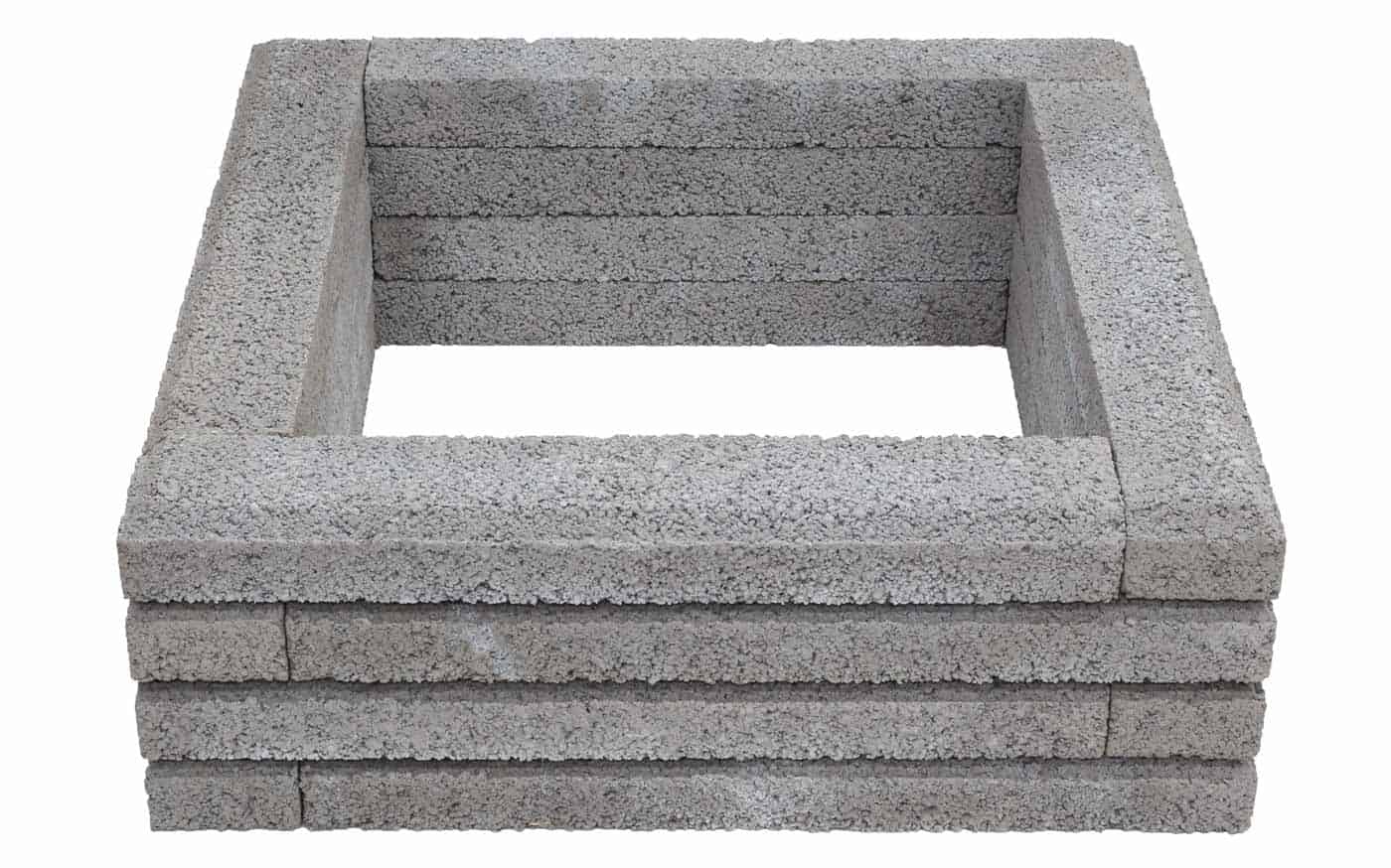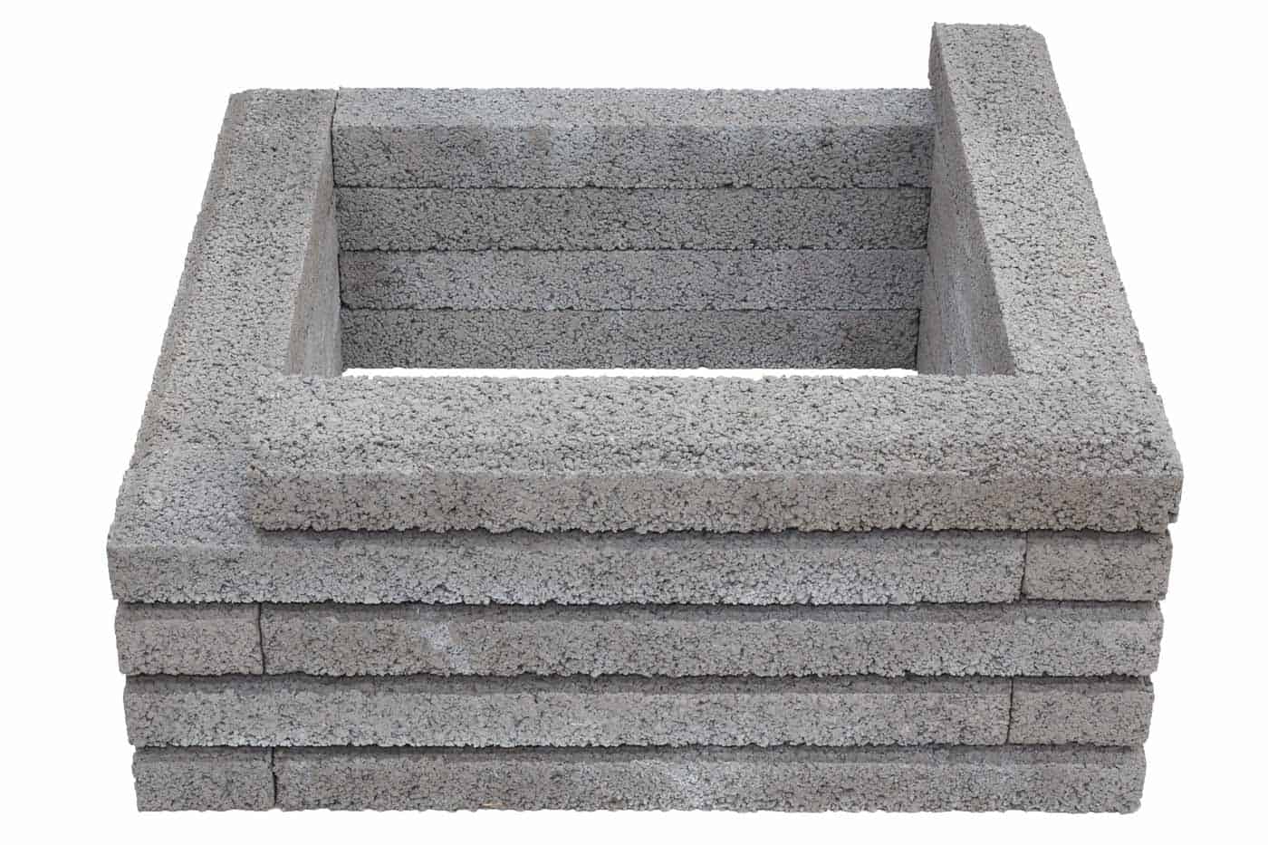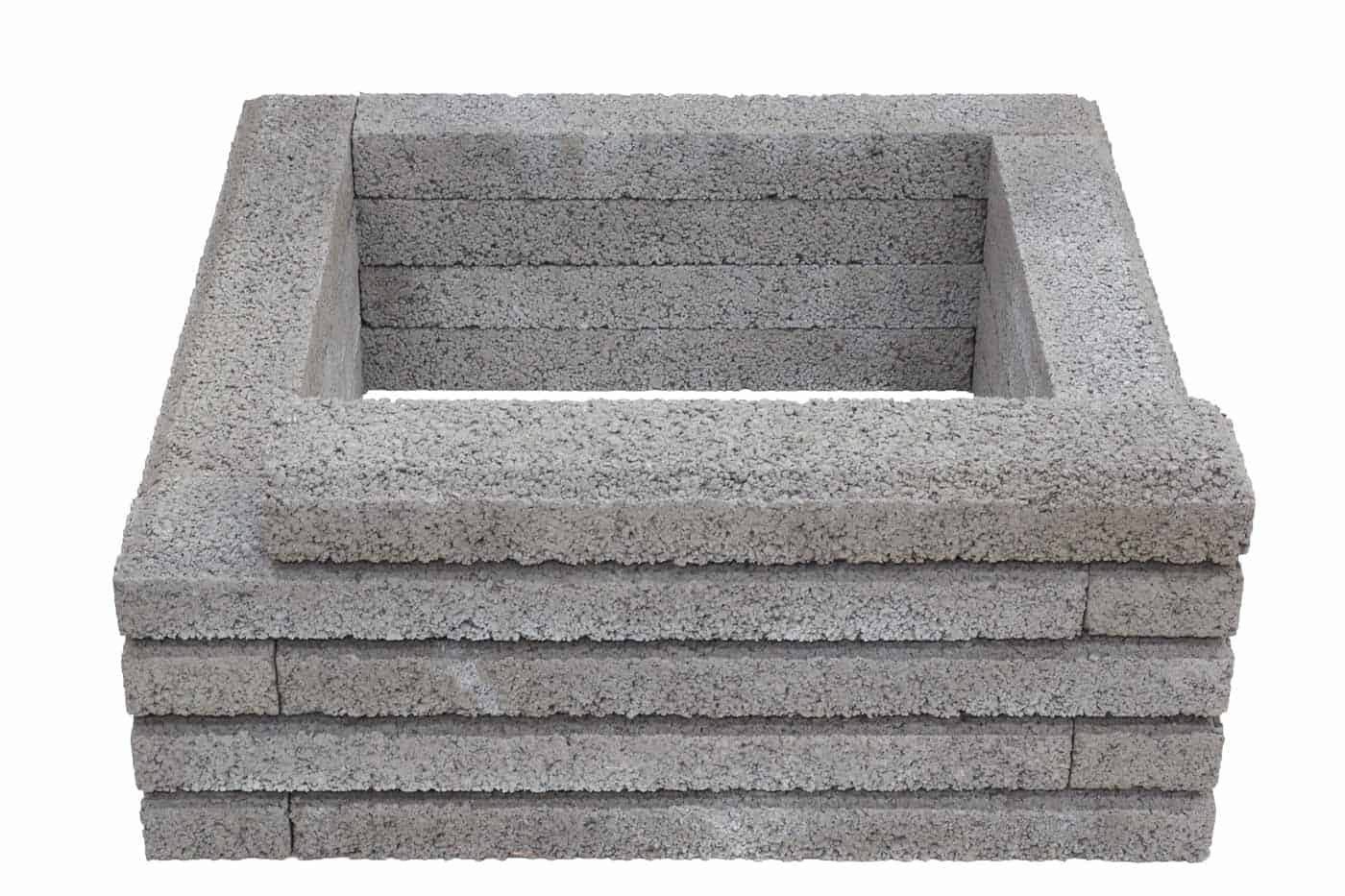 Sur une surface à niveau, (de sable ou de poussière de pierre) placez le 1er bloc de la 1ère rangée (blocs des rangées Impaires) en commençant par l’avant. Placez le à l’extrémité droite de l’endroit déterminé pour l’assemblage de votre foyer.