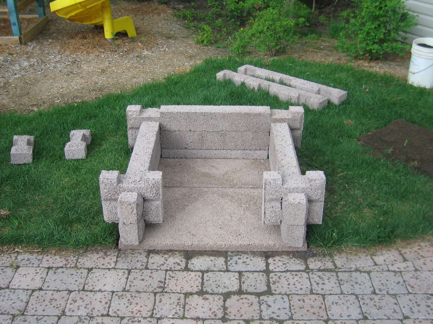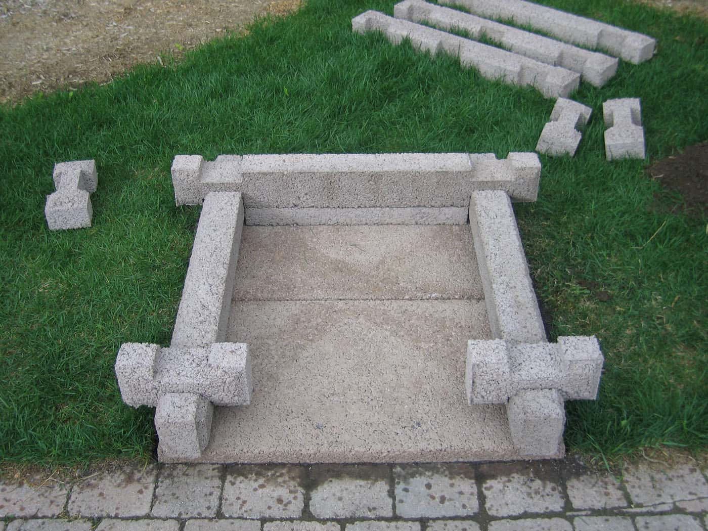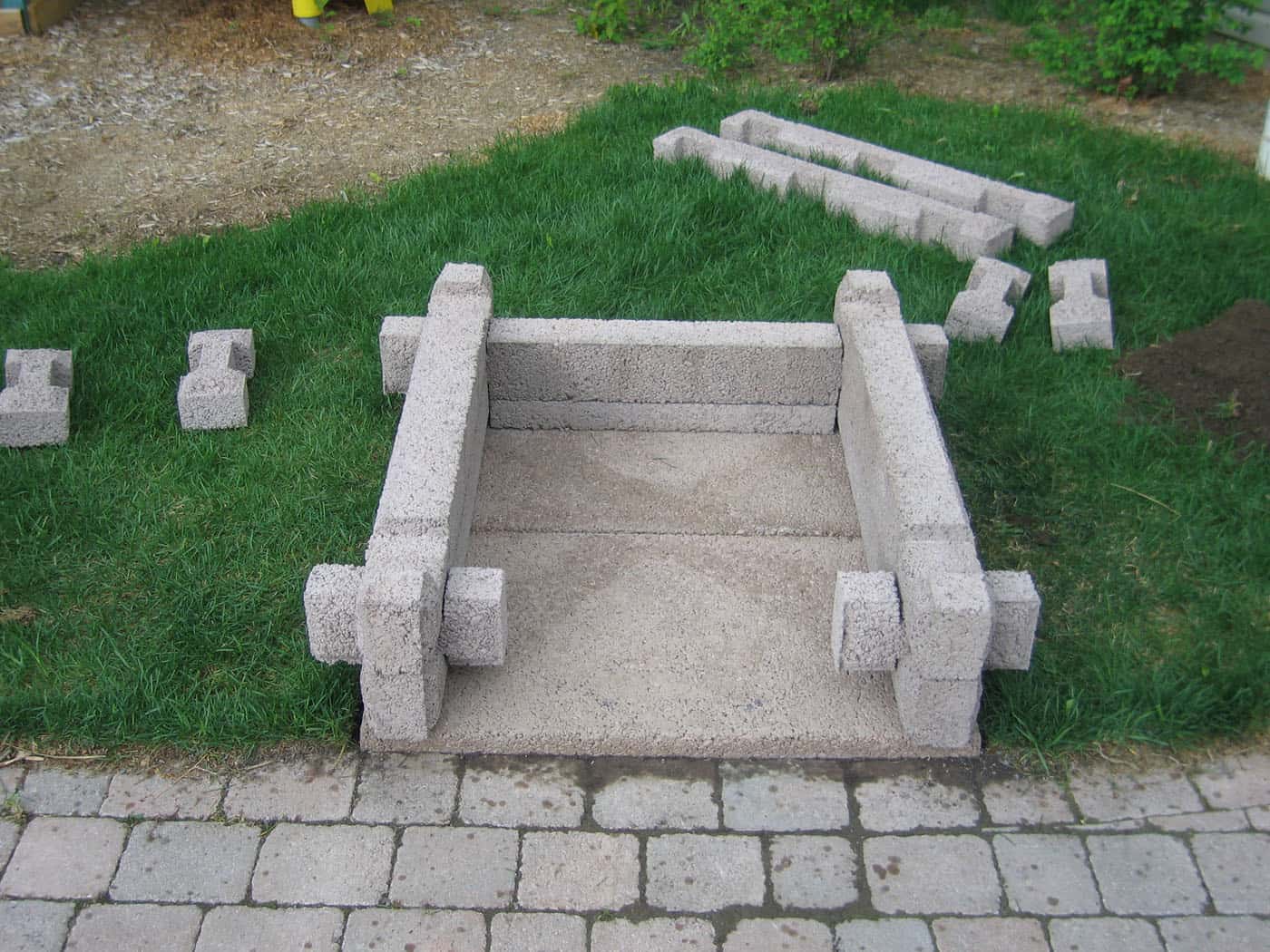 Placez le 42″ (4 coches en ligne) à l’arrière et les 2 petits blocs de 12″. Cognez légèrement les blocs en les déposant. S’il y avait des petites roches cela les écrasera. Assurez-vous que vos blocs soient bien déposés à plat les uns sur les autres.