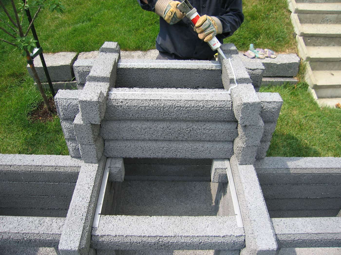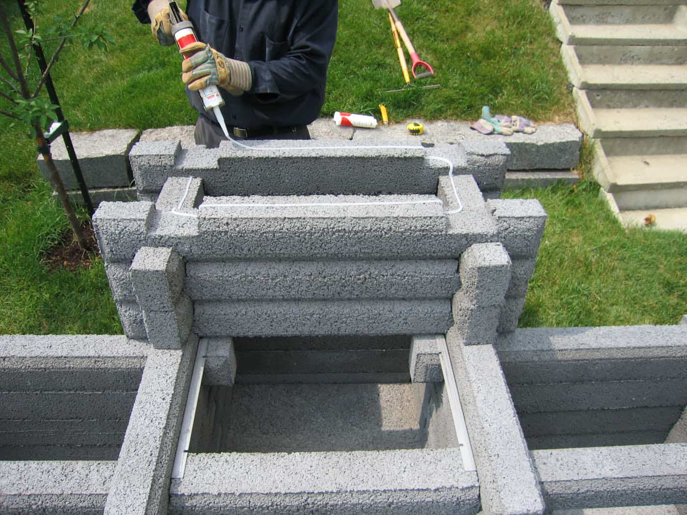 Place 2 blocks of 24”. As the chimney will decrease, put the silicone closer to the inside. This way it will not be visible from the outside when you will put the next stone.