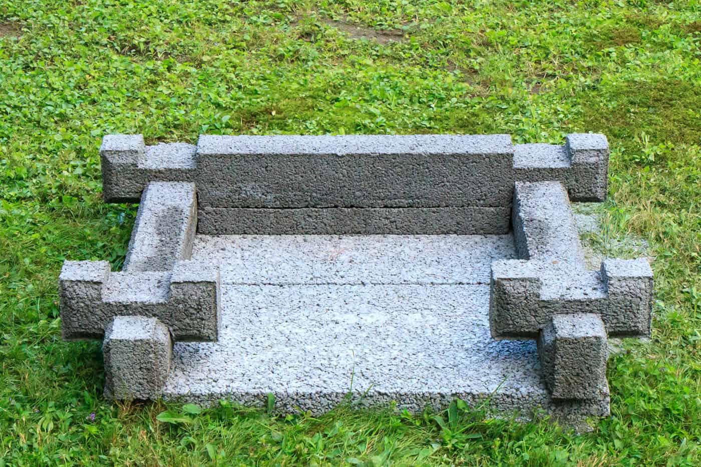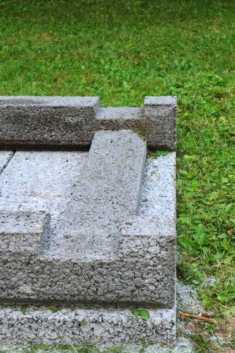 Put the 42” (4 notches in line) at the back and the 2 little blocks of 12” at the front. In putting them down, gently tap the blocks. If there were small stones, that would crush them. Make sure that your blocks are well placed flat over each other.