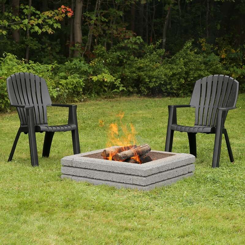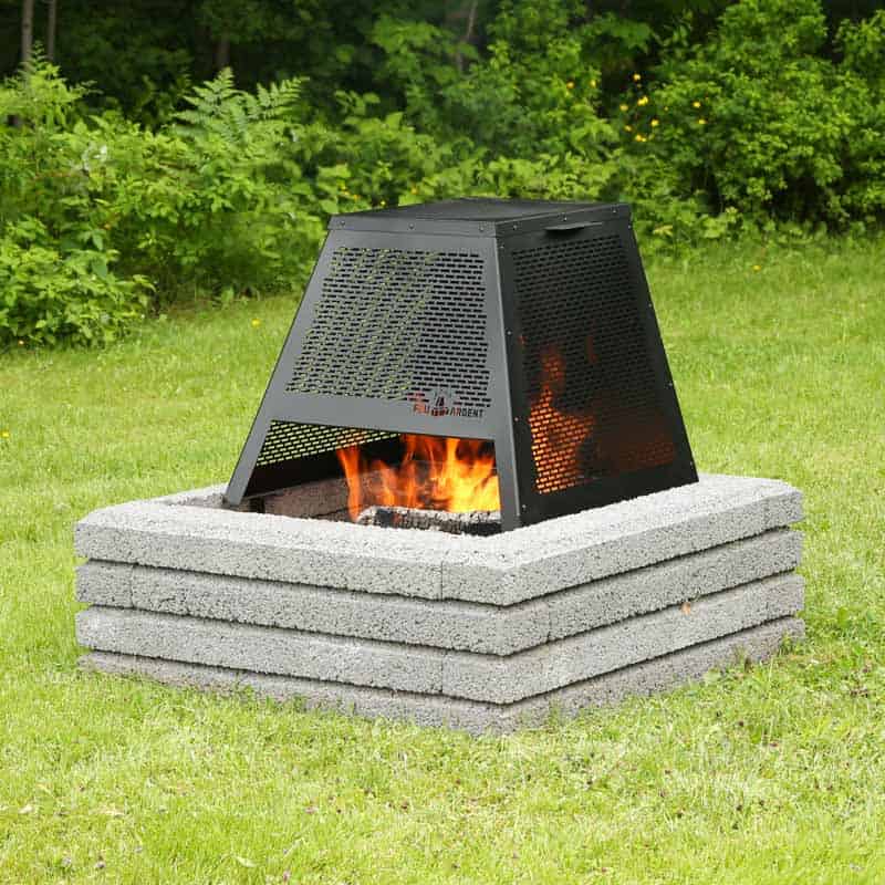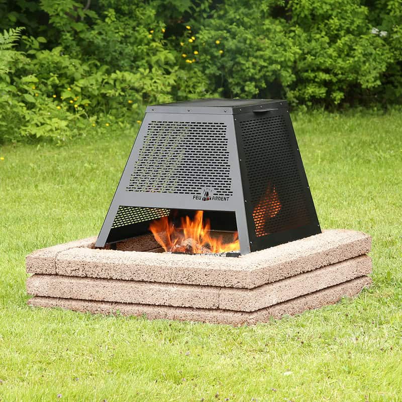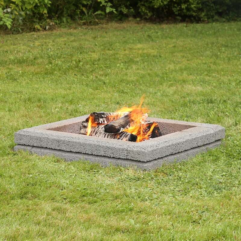 - A square-shaped firepit with 3 rows of height, which offers the possibility of designing it according to the height desired by adding optional rows (raises the fireplace by 3 1/8″ per row);